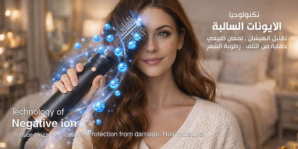 تقنية الأيونات تساهم في تهدئة الشعر المتطاير والحفاظ على رطوبته، مما يمنحك خصلات أكثر انسيابية مع كل استخدام.