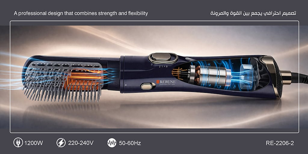 مع مصفف الشعر ريبون 1200 واط بفرشتين ستحصلين على تصفيف مرن يناسب كل إطلالة، سواء كنتِ تبحثين عن تكثيف إضافي أو شعر ناعم وانسيابي.
