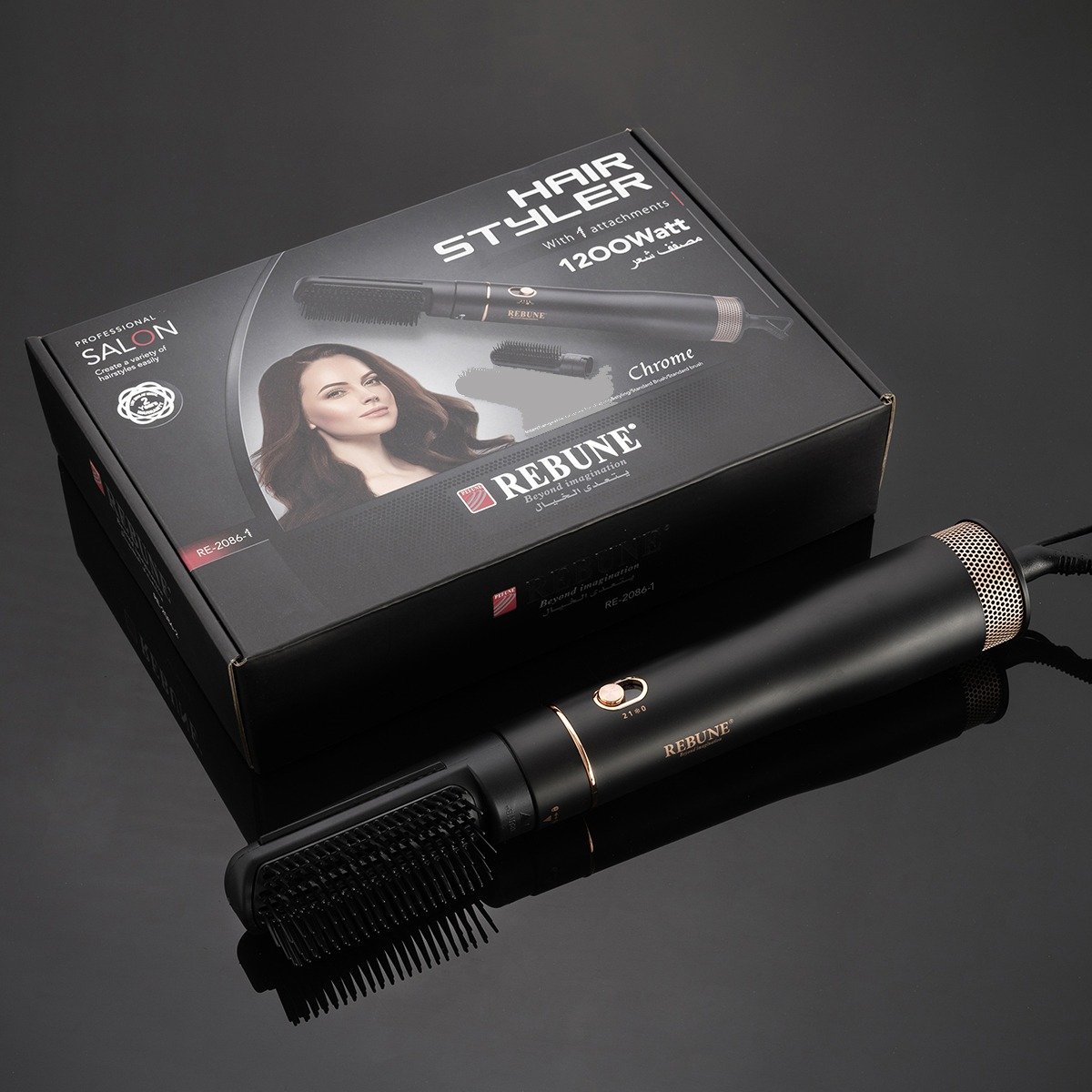 ريبون استشوار مصفف شعر بفرشة واحدة - 3 مستويات حرارة - 1200 واط - أسود - RE-2086-1
